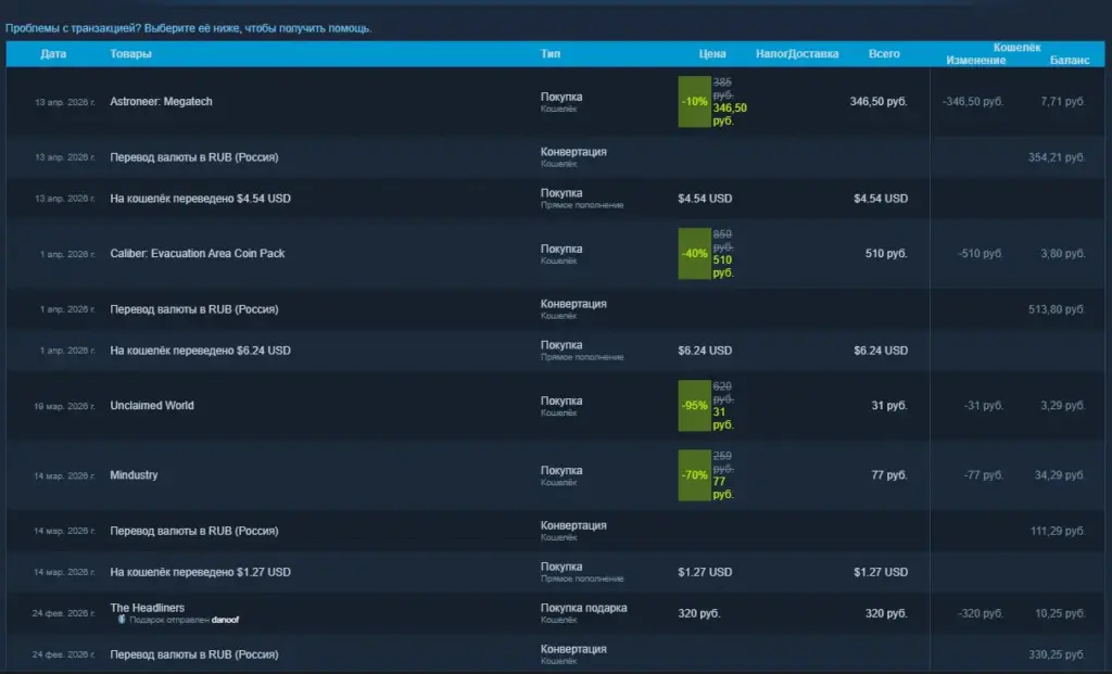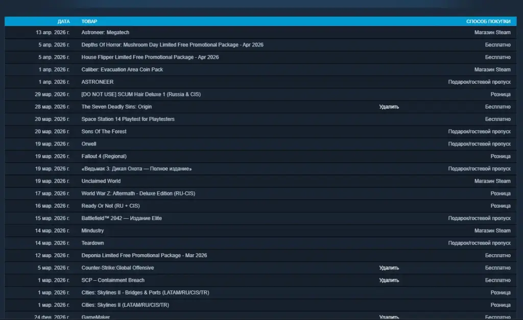 Как посмотреть список покупок и активаций лицензий в Steam?